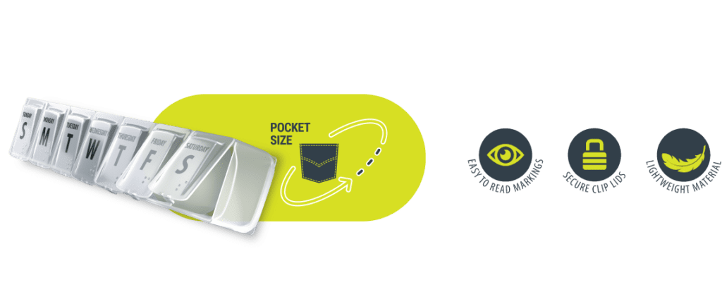 Embrace a week’s worth of organization with our pill organizer, which boasts seven dedicated compartments for each day. This user-friendly design comes with secure clip-on lids for organized storage, clear and legible markings, and is perfectly suited for larger pills. Its pocket-sized, lightweight, and compact structure makes it the ideal companion for your travel adventures.